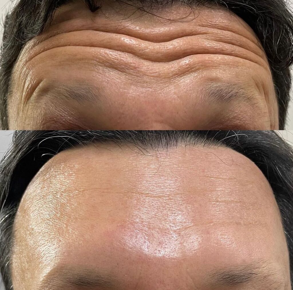 Es posible corregir las arrugas dinámicas del rostro (arrugas provocadas por movimientos mímicos) con la administración de toxina botulínica. Cabe señalar aquí que las líneas estáticas no se pueden corregir mediante la administración de toxina botulínica.